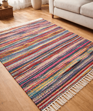 Chindi rugs are made from recycled textile materials, promoting sustainability and responsible production. Each rug carries a unique combination of colors and textures, offering a distinctive handcrafted appeal. These rugs are popular among eco-friendly brands and buyers looking for sustainable décor solutions without compromising quality.