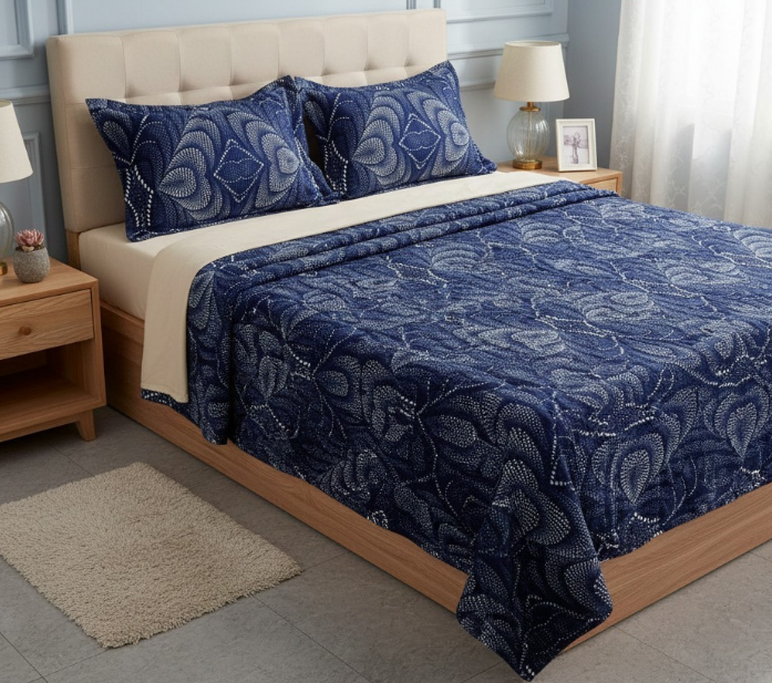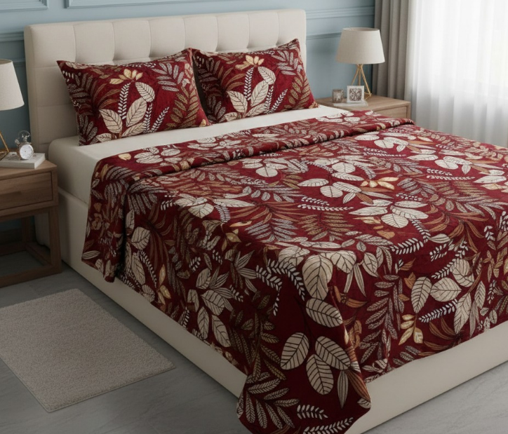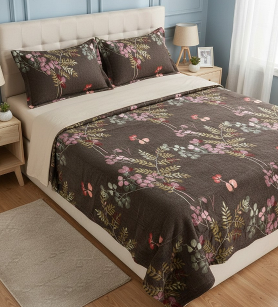 Each woolen bedsheet is carefully woven to maintain durability, shape retention, and resistance to pilling even after repeated use. The fabric naturally regulates temperature, keeping the body warm without feeling heavy or uncomfortable. Our collection features elegant designs, rich color palettes, and fine detailing that enhance bedroom aesthetics while delivering practical comfort.